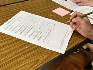意見交換会を開催した後、全議員でアンケート結果を読み、意見交換会当日のふりかえりと次回に向けた意見を出し合いました。