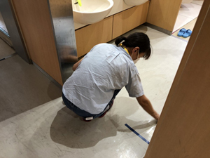 給食用のトレイ消毒とトイレ清掃(白木小学校)